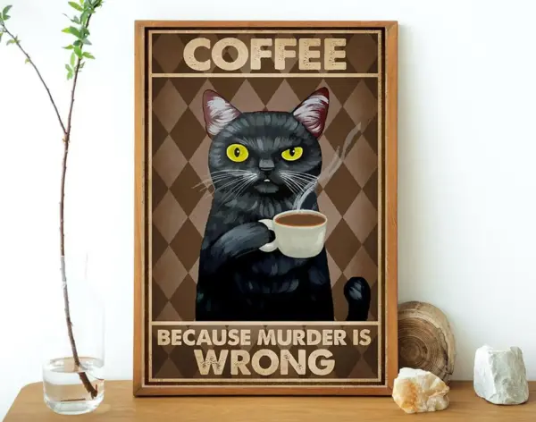 Coffee Because Murder Is Wrong Poster Black Cat Lover Cat Lover Gift Coffee Lovers Poster Home Decor Vertical Poster No Framed
