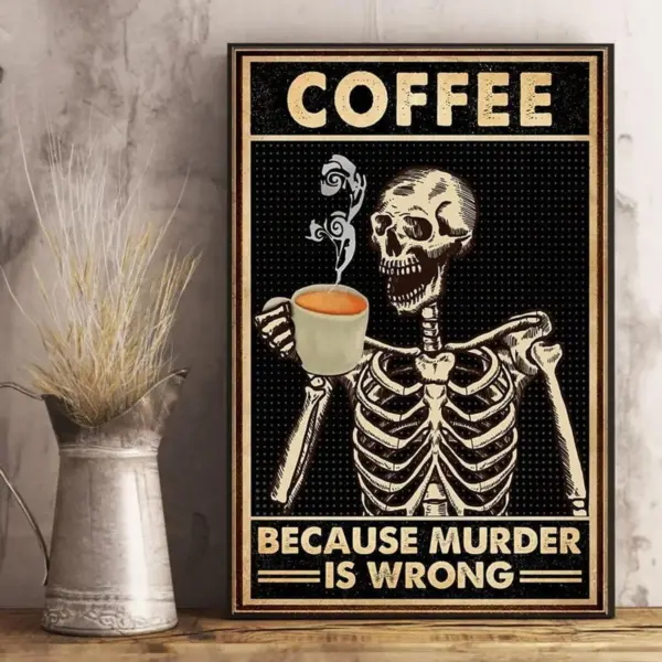 Coffee Because Murder Is Wrong Skull Retro Black Poster No Frame Or Canvas With Frame