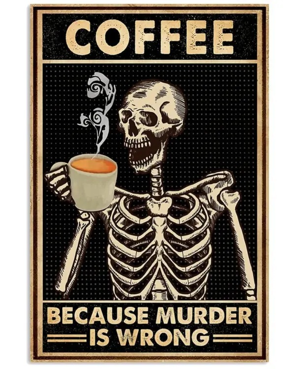 Coffee Because Murder Is Wrong Skull Retro Black Poster