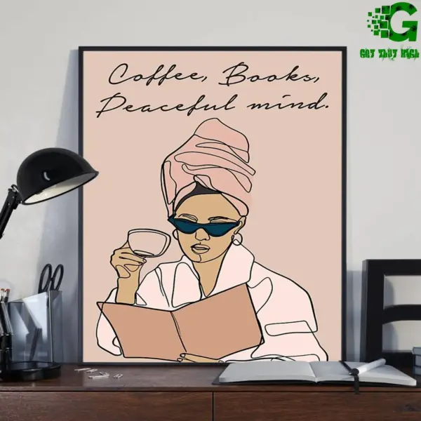 Coffee Books Peaceful Mind Poster Wall Art Living Home Decor Wall Decor Best Gift Ever