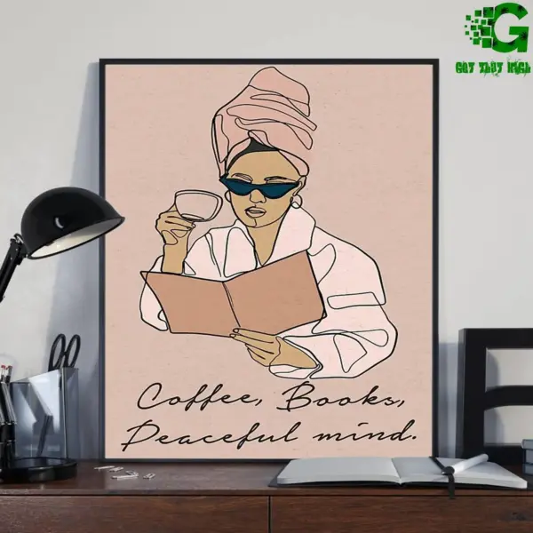 Coffee Books Peaceful Mind Poster Wall Art Living Home Decor Wall Decor Best Gift Ever 2