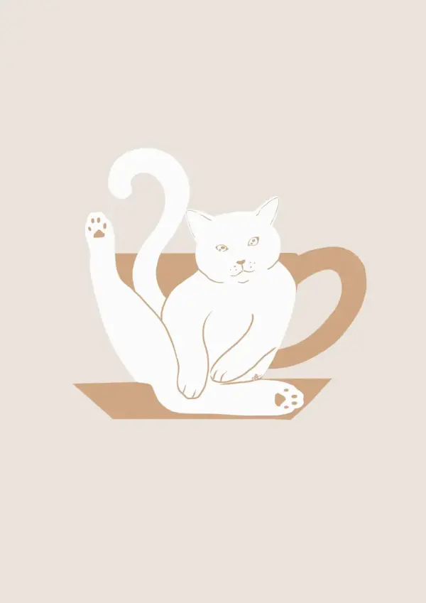 Coffee Cat Art Print Giclee Art Poster Coffee Cat Lover