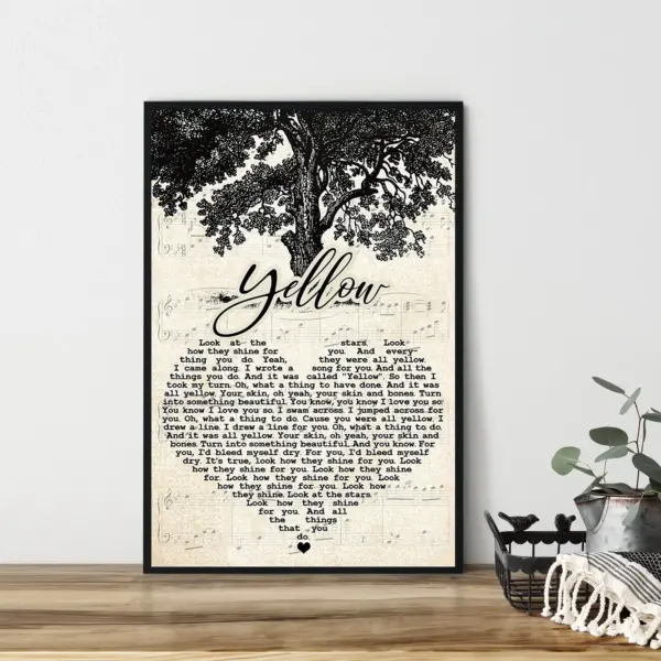 Coldplay Yellow Lyrics Poster Best Gift Ever Song Lyrics Poster Song Lyrics Print Lyrics Wall Art Music Poster Home Decor 0709
