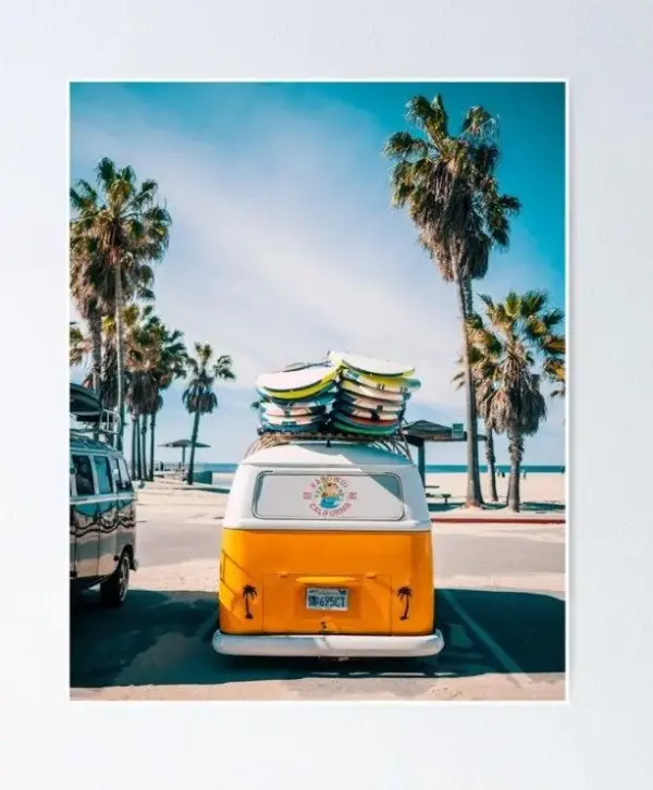 Combi Of Surf Poster Car With Surfboards Camper Bus Print Coastal Poster Coastal Surf Print Framed Matte Canvas