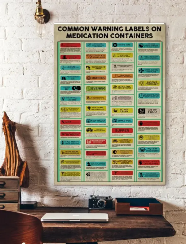Common Warning Labels On Medication Containers Vertical Print Poster