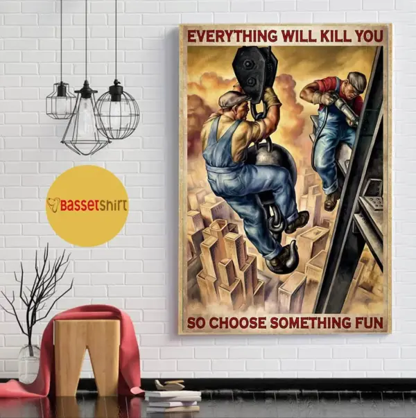 Construction Worker Everything Will Kill You So Choose Something Fun Poster