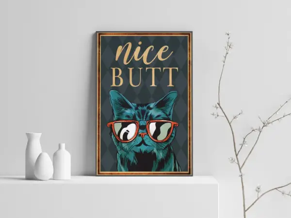 Cool Cat Nice Butt Poster Cat Canvas Print Cat Lover Gift Funny Kitty Print Bathroom Wall Art Sign For Home