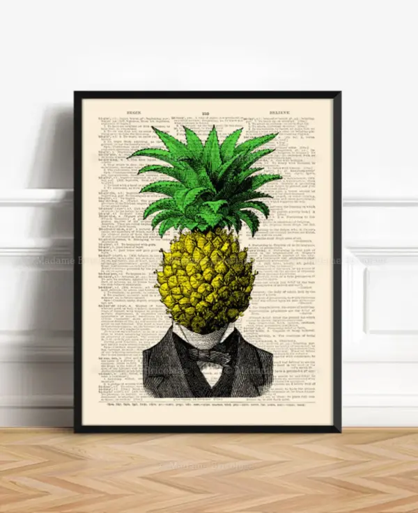 Cool Pineapple Funny Boyfriend Gift Unique Gift Poster Cabinet Curiosite Kitchen Staircase Coworker Gift Print Surreal Boy Gift 474