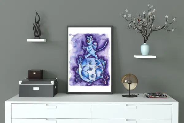 Copy Of Illustration Poster Cat Traveling Around The World Illustration Wall Art Collection Poster Unique Funny Poster Cat Poster