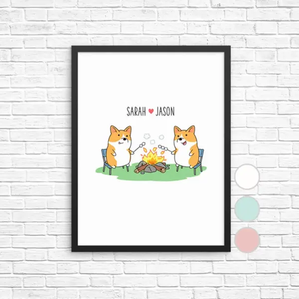 Corgi Wall Art Custom Name Print Personalized Couple Wedding Decor Dog Corgi Camper Sign Poster Newlywed Valentine Housewarming Gift