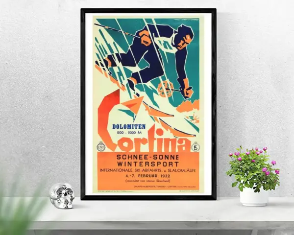Cortina Dolomiten Snow Sun Winter Sport 1932 Ski Poster Vintage Travel Poster Italy Skiing Print Dolomites Tourism Print Ski Resort Art