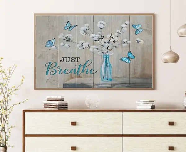 Cotton Flowers Just Breathe Art Poster Breathe Print Just Breathe Sign Just Breathe Poster From Heaven Gift Butterfly Flower Poster