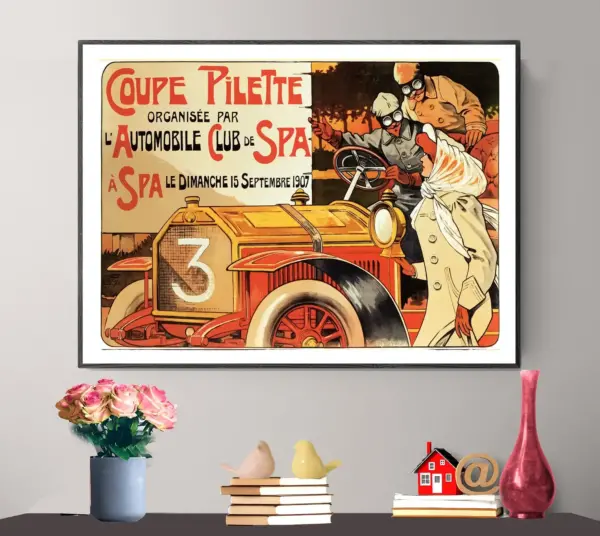Coupe Pillette Automobile Club Du Spa Vintage Grand Prix Poster 1907 Poster Paper Sticker Or Canvas Print Gift Idea