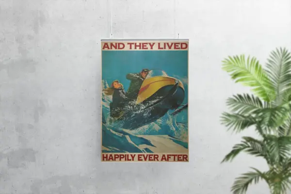 Celebrate love and winter sports with this charming snowmobile couple poster - perfect gift for adventurous partners who share passion for snow and each other.
