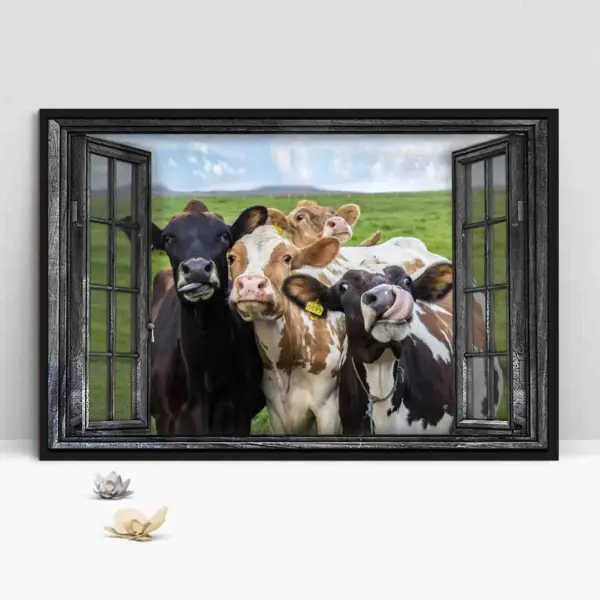 Cow In Barn Door Dairy Farm Wall Art Funny Cow Poster Print Wall Hanging Cow Farm Print Country Poster Home Decor No Frame