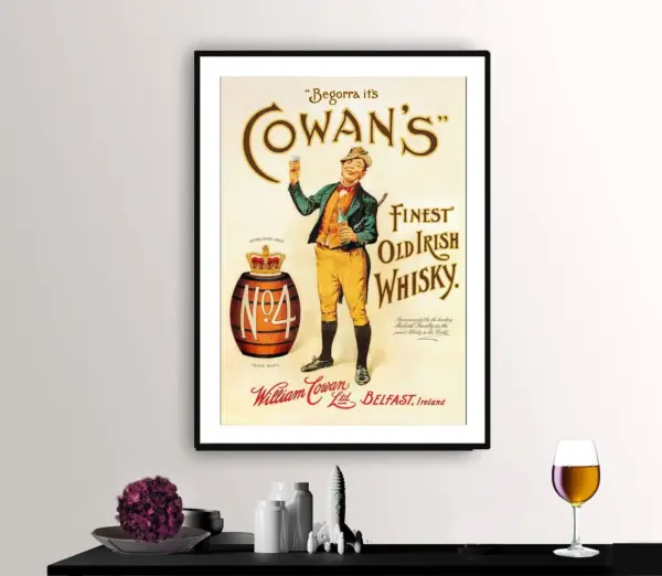 Cowan S Finest Old Irish Whisky Vintage Food Drink Poster Poster Print Sticker Or Canvas Print Gift Idea Christmas Gift