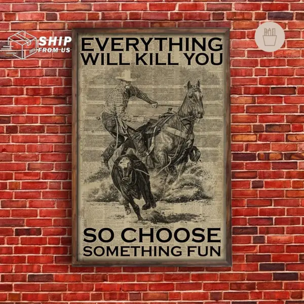 Cowboy Calf Roping Rodeo Poster Everything Will Kill You So Choose Something Fun Poster Home Living Decor Poster