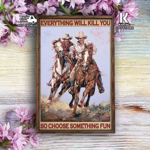 Cowboy Riding Horse Everything Will Kill You So Choose Something Fun Poster Wall Art Print Home Living Decor Poster