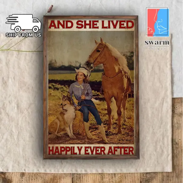 Cowgirl And She Lived Happily Ever After Poster The Girl Love Horse And Dog Home Living Decor Poster