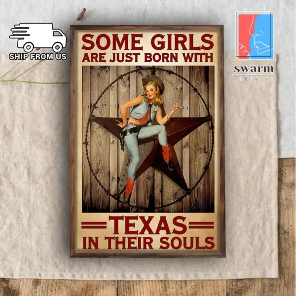 Cowgirl Poster Some Girls Are Just Born With Texas In Their Soul Poster Farming Farmer Home Living Decor Poster