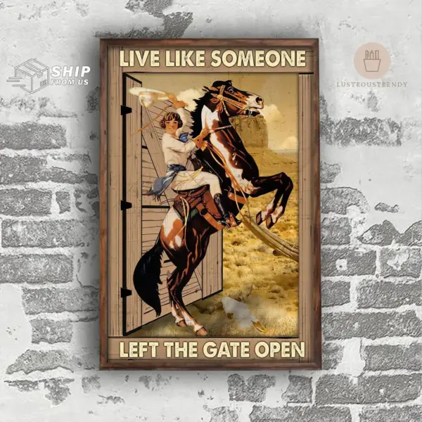Cowgirl Rodeo Poster Live Like Someone Left The Gate Open Poster Home Living Decor Poster