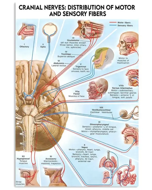 Cranial Nerves Distribution Of Motor And Sensory Fibers Motor Poster