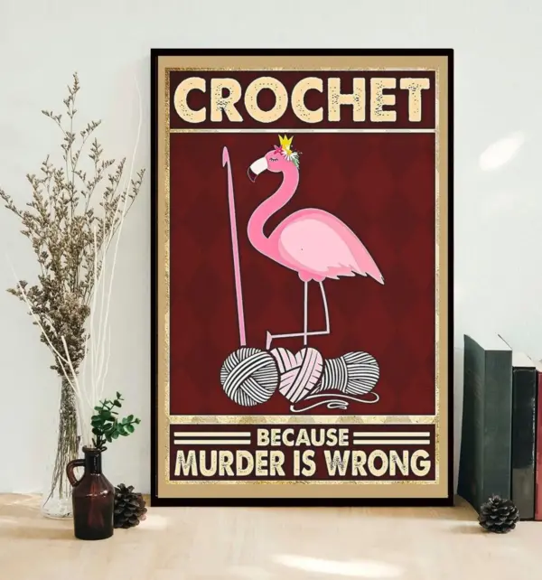 Crochet And Knitting Because Murder Is Wrong Poster Love Knit Poster Flamingo Poster Cute Flamingo Flamingo Knitting Poster Knitting
