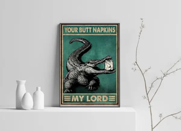Crocodile Your Butt Napkins My Lady Lord Poster Funny Alligator Unframe Paper Poster Bathroom Toilet Wall Decor Animal Lovers Best Gift Ever