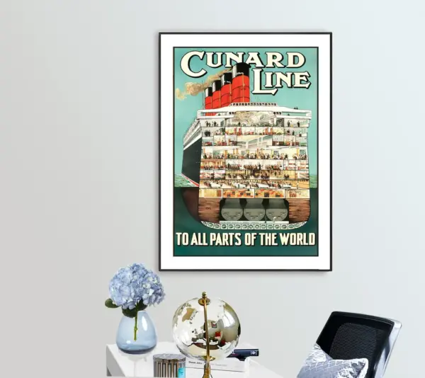 Cunard Line To All Parts Of The World Vintage Travel Poster Poster Paper Sticker Or Canvas Print Gift Idea