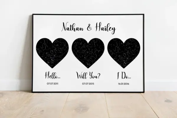 Custom 3 Sky Constellation Print Hello Will You I Do Under This Sky Poster Love Story Map Heart Art Wedding Gift For Couple