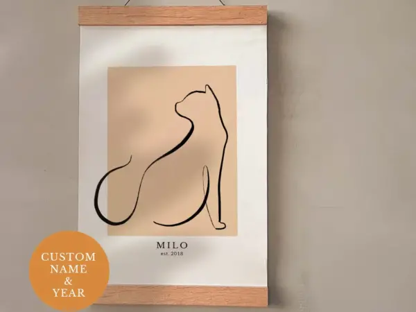 Custom Cat Print With Custom Name Date Cat Portrait Abstract Cat Printable Wall Art Personalised Cat Poster Pet Portrait Neutral Decor