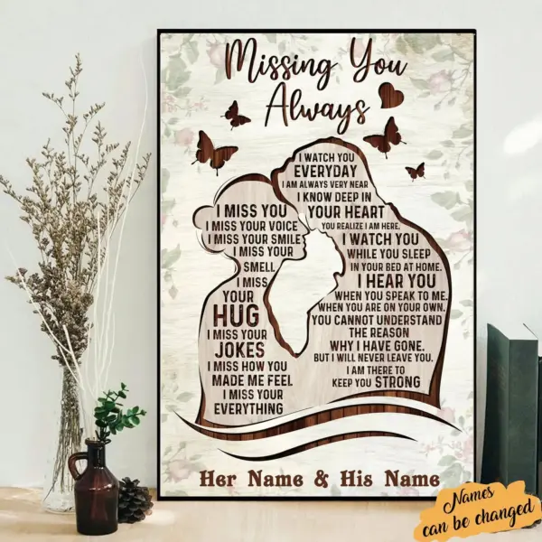 Custom Name Husband And Wife Poster Missing You Always Wall Art Gift For Wife Gift For Husband Custom Name Wall Art Anniversary Wall Art