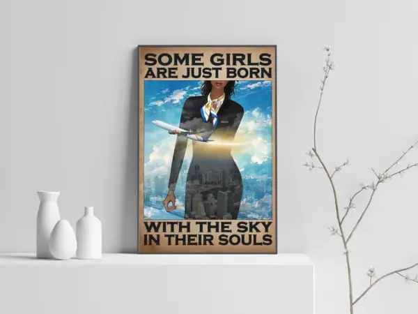 Custom Afro Woman Flight Attendant Poster - Airplane Art Print