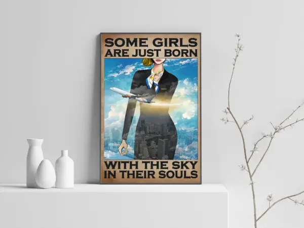 Custom Some Girls Are Just Born With The Sky In Their Souls Poster Custom Poster Flight Attendant Print Airplane Art Print Wall Art