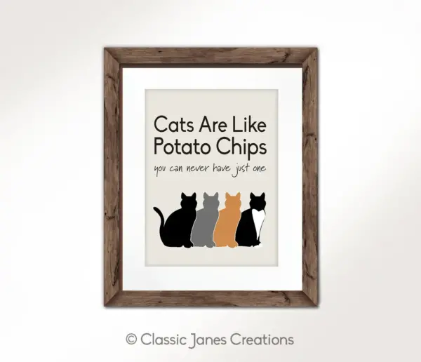 Customizable Cats Are Like Potato Chips Cat Sign Funny Cat Wall Art Cat Wall Decor Cat Poster Cat Quote