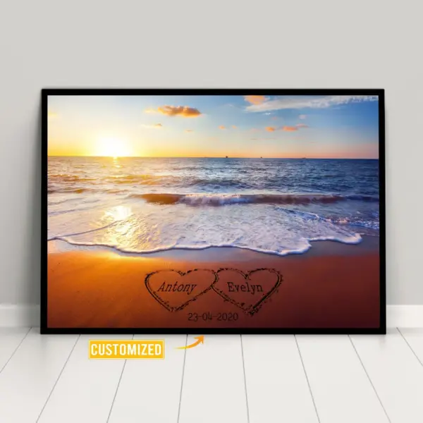 Customized Couple Anniversary Canvas Sand Writing Wall Art Gifts From Husband Couple Beach Wall Art Anniversary Date Print Coastal Decor