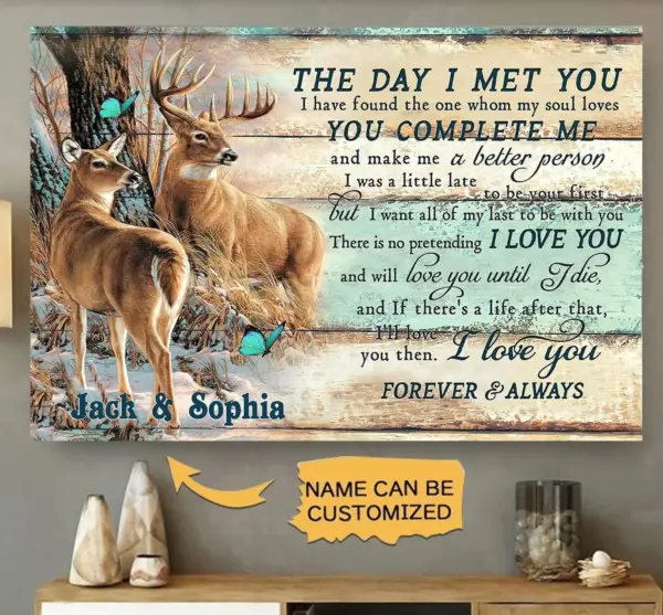 Customized Deer Name Poster Hunting Buck And Doe Poster The Day I Met You Poster Wedding Gift Anniversary Poster Personalized Poster