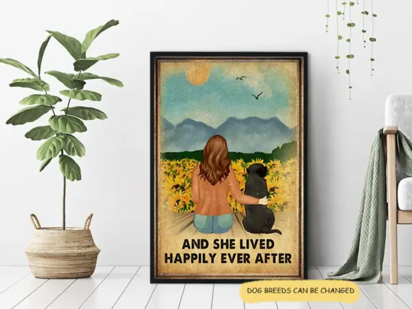 Customized Dog And She Lived Happily Ever After Poster Custom Name Poster Gifts For Dog Lovers Vintage Girl And Dog Wall Art No Frame