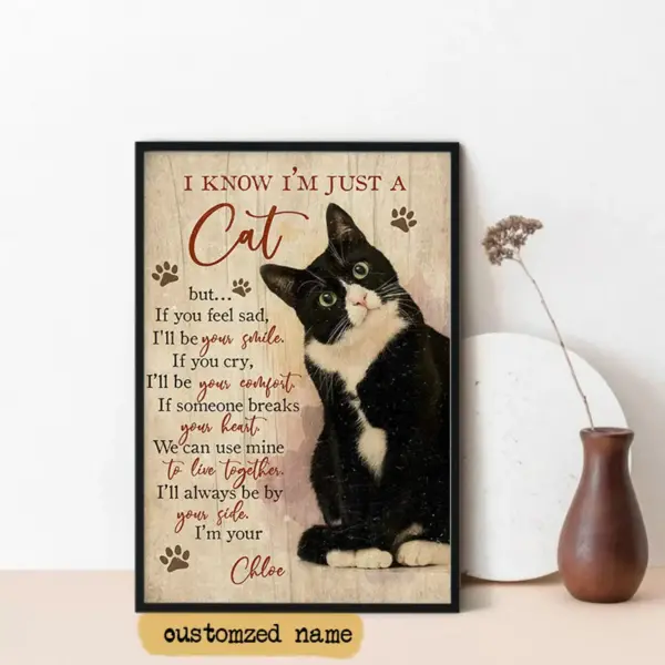 Customized I Know I M Just A Cat Poster Tuxedo Cat Poster Motivational Quote Animal Art Cat Lover Gift Cute Cat Wall Art No Frame