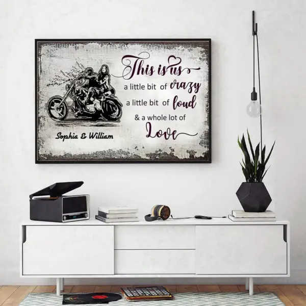 Customized Motorcycle This Is Us A Little Bit Of Crazy Loud Love Poster Motorcycle Gift Love Biker Horizontal Poster No Framed