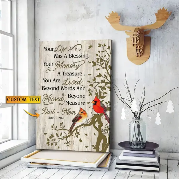 Customized Parents Memorial Canvas Art Cardinal Canvas Wall Art Mothers Day Poster Fathers Day Poster Family Remembrance Wall Art