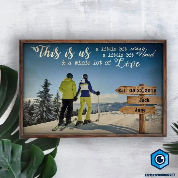 Customized Skiing Poster Skiers Skiing Couple Arrow Sign This Is Us Wall Art Home Decor Poster Print