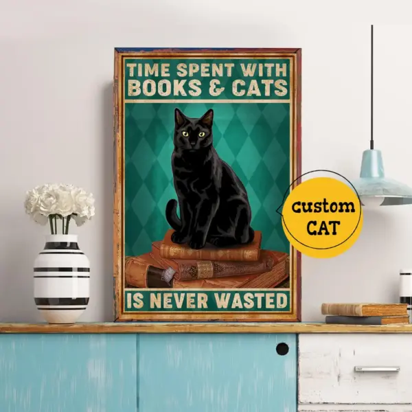 Customized Time Spent With Books And Cats Is Never Wasted Poster Bookworm Canvas Cat Lovers Gift Book Lovers Poster Pet Lover Gifts