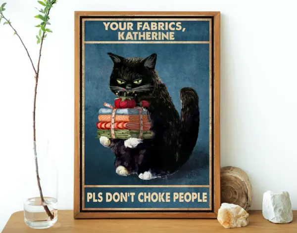 Customized Your Fabrics Pls Don T Choke People Poster Vintage Black Cat Poster Knitting Lover Funny Kitty Vertical Poster No Framed