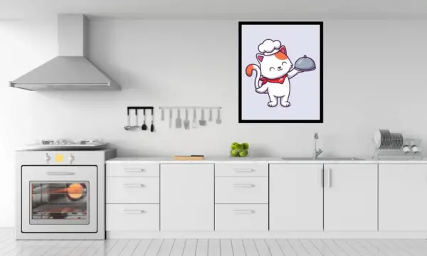 Cute Cat Chef Food Cartoon Cat Lover Gift Cat Wall Art Vintage Cat Poster Funny Cat Poster Print