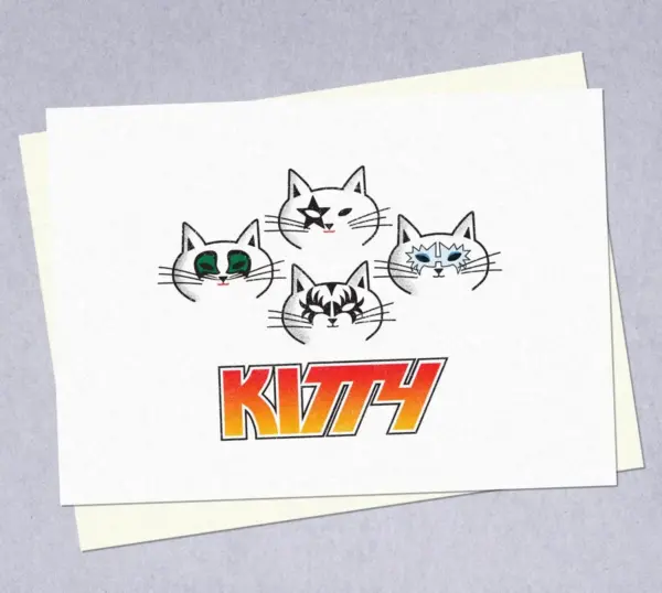 Cute Cat Kiss Rock Band Postcard Cat Lover Postcard Feline Lover Postcard Kawaii Cat Postcard
