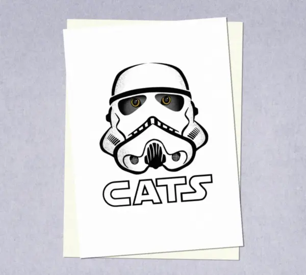 Adorable kawaii cat dressed as a Star Wars stormtrooper. Perfect postcard for cat lovers and Star Wars fans! High-quality print on thick cardstock.