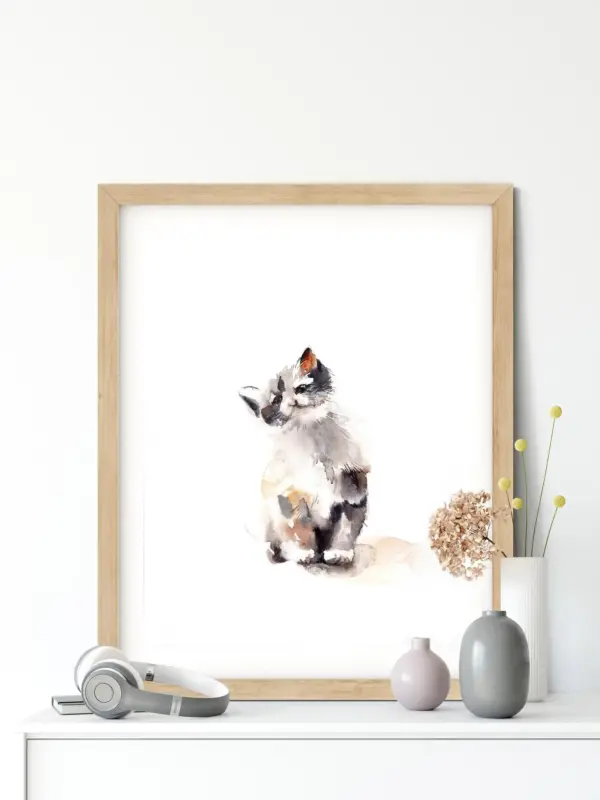 Cute Kitten Art Print Black Orange Kitten Watercolor Painting Cat Giclee Print Minimalist Cat Wall Print Kitty Art Print