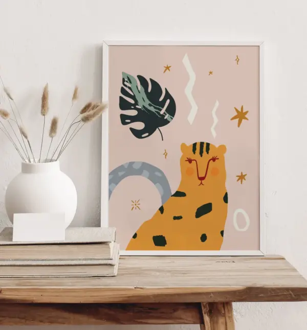 Cute Leopard Jungle Artprint Wild Cat Poster Leopard Poster Leopard Illustration Wild Animals Poster Exotic Leopard Wall Art Pastel