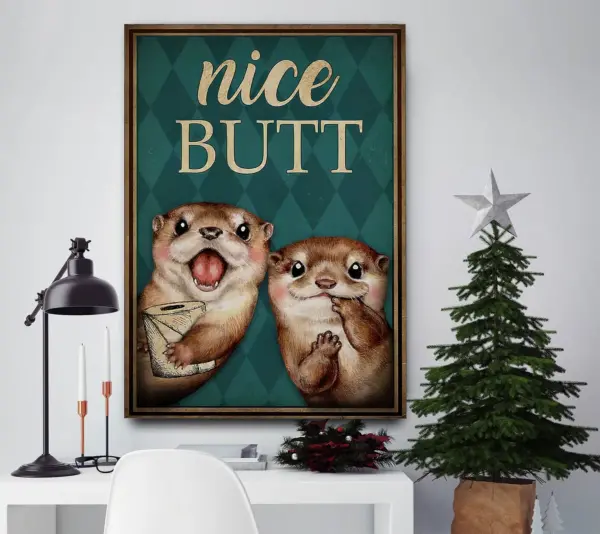 Cute Otters Poster Nice Butt Poster Otters Lovers Canvas Print Toilet Paper Poster Funny Bathroom Decor Bathroom Wall Art Funny Decor